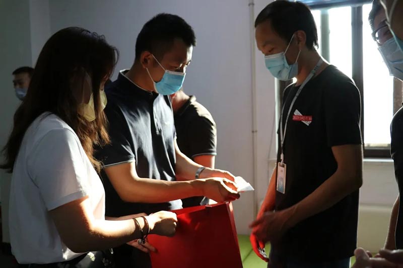 19日下午,租掌柜总经理杨总携人力资源的小伙伴,为常年在外服务的工程师团队以及全体租掌柜成员发放了端午节礼物及京东商城购物卡。礼物挑选纯手工编织的五彩绳以及囊,寓意在疫情之下,希望租掌柜全体员工以及全国人民都能平安健康,无灾无祸的度过美好的人生。购物卡更希望员工能够在斌午节到来之际,买到自己喜欢的礼物,同时也为绍家经济发展出一份微薄之力。